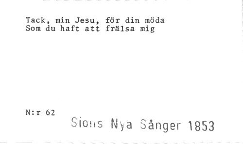 //// Tack, min Jesu, för din möda Som du haft att frälsa mig //// N:r 62 //// Siohs f^a Sånger 1853