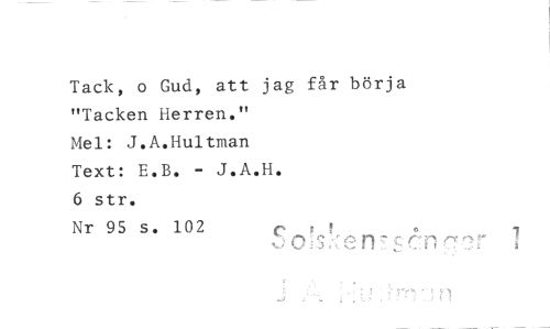 //// Tack, o Gud, att jag får börja "Tacken Herren." //// Mel: J.A.Hultman Text: E.B. - J.A.H. //// 6 str. //// Nr 95 s. 102 r ; ! ° //// ^o^.-fen*scn rror