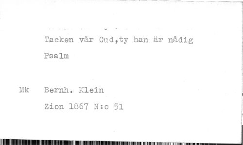 //// Tacken vår Gud,ty han är nådig Psalm //// Bernh. Klein Zion 1867 N:o 51