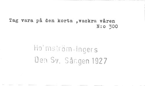 //// Tag vara på den korta ,vackra våren //// N:o 300 //// ho my'.i'äm-tn$ers Hen Sv. Sången 1927