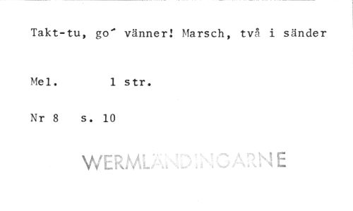 //// Takt-tu, go" vänner! //// Mel. 1 str. //// Nr 8 s. 10 //// WERML .. //// Marsch, två i sänder