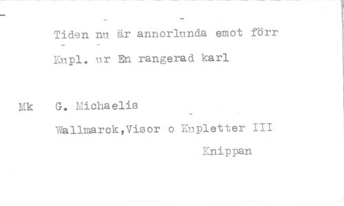 //// Tiden nu är annorlunda emot forr Kupl. ur En rangerad karl //// G. Michaelis //// Wallmarck,Visor o Kupletter 111 //// Knippan