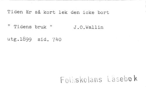 //// Tiden är så kort lek den icke bort //// " Tidens bruk " J.O.Wallin //// utg.1899 sid. 740 //// Foh.skoiäns Läsebok