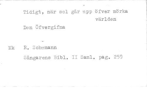 //// Tidigt, när sol går upp öfver mörka //// världen //// Den Öfvergifna //// R. Schumann //// Sångarens Bibi. II Sami. pag. 259