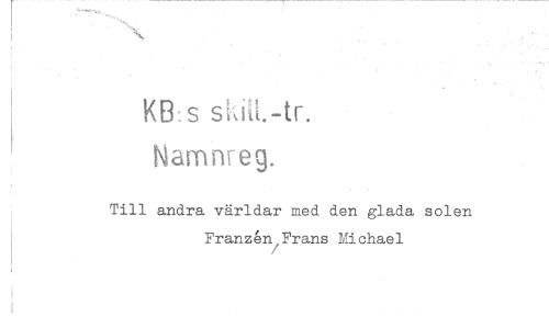 //// KB s sML-tr. Namnreg. //// Till andra världar med den glada solen Franzén^Frans Michael