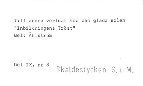 //// Till andra verldar med den glada solen "Inbildningens Tröst" //// Mel: Åhlström //// Del IX, nr 8 , , //// Skatdestycken SJ