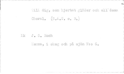 //// .Jill dig, som hjertat gläder och all* dess Choral. (s.A.T. o. B.) //// Jc J. S. Bach //// Hemma, i skog odi p& sjön N:o 6.