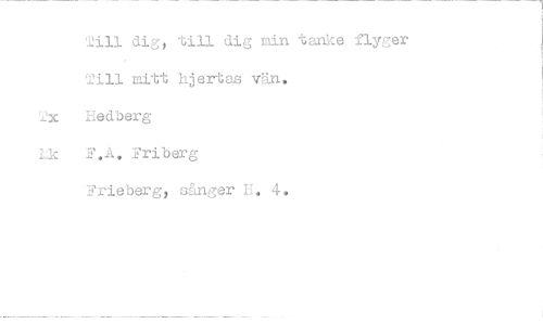 //// Till dig, till dig min tanke flyger Till mitt hjertas vän. //// Jx Hedberg hk F.A. Friberg //// Frieberg, s&nger B. 4.