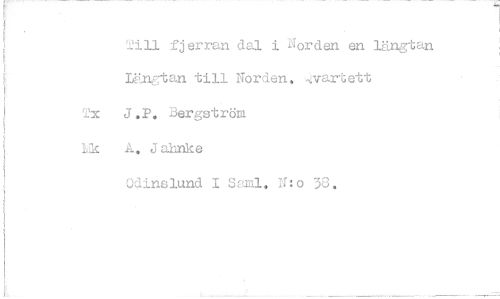 //// Jill fjerran dal i Norden en längtan Längtan till Norden, kvartett J,P. Bergström A. Jahnke //// Odinslund I Ssml. N:o 38.