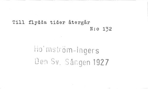 //// Till flyååa tider återgår //// N:o 132 //// ho'mström-lngers Den Sv. Sår,gen 1927
