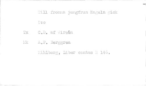 //// IlU fromma jungfrun ängeln gick D:o //// Tx C.D. af xirsén //// 1.3.< A,3?. Berggren //// llihlberg, Liber cantus Ii. 146.