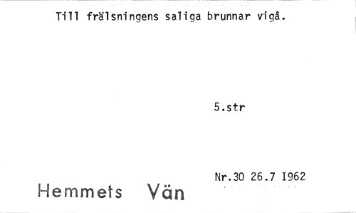 //// Till frälsningens saliga brunnar vigå. //// Hemmets //// 5.str //// Nr.30 26.7 1962 //// Vän