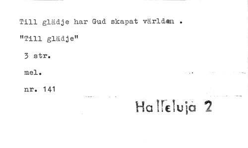 //// Till glädje har Gud skapat världan . "Till glädje" //// 3 str. mel. nr. 141