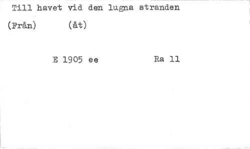 //// Till havet vid den lugna stranden (Från) (åt) //// E 1905 ee //// Ra 11