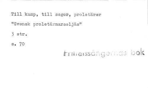 //// Till kamp, till seger, proletärer "Svensk proletärmarseljäs" //// 3 str. //// s. 70 //// ii" ii i ) t ti t SS C: t. . .< 1 -ii h 'O .!^