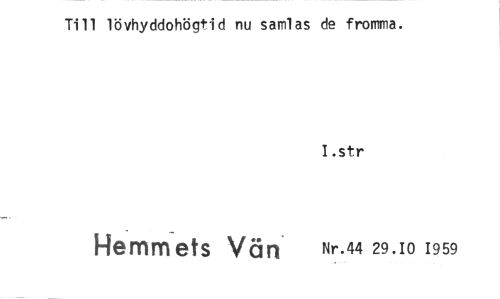 //// Till lövhyddohögtid nu samlas de fromma. //// I .str //// Hemmets Vän ^.44 29.101959