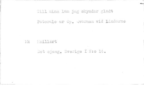 //// Till sina lam jag skyndar gladt Patorale ur Op. ^värnen vid Lindarne //// Hc liaillart //// Det sjung. Sverige I H:o 14.