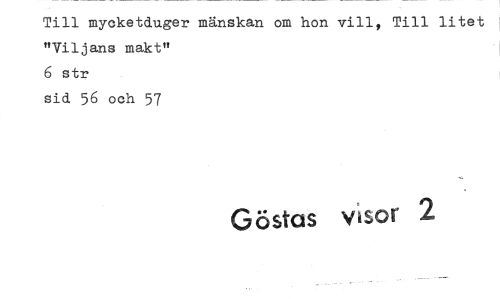 //// Till myeketduger mänskan om hon vill, Till litet "Viljans makt" //// 6 str //// sid 56 och 57 //// Göstas vsor 2
