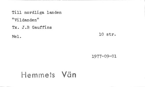 //// Till nordliga landen "Vildanden" //// Tx. J.B Gauffins //// Mel. //// Hemmets Vän //// 10 str. //// 1977-09-01