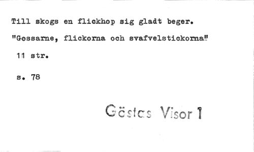 //// Till skogs en fliekhop sig gladt beger. "Gossame, flickorna och svafvelstiekoma" 11 str. //// s. 78 //// Ocffcs Visor I