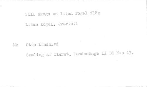 //// Till skogs en liten fogel flog Liten fogel. vvartett //// Otto Lindblad //// Samling af flerst. , andssange II