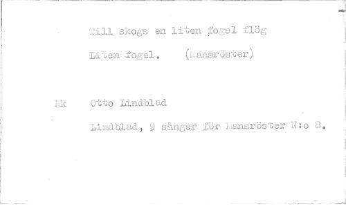 //// Jill skogs en liten fogel flög Liten fogel. (Lansröster) //// Otto Lindblad //// Lindblad, 9 sånger för I.^nsröster N:o