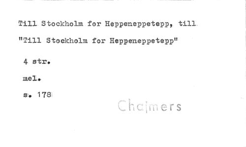 //// Till Stockholm for Heppeneppetepp, till "Till Stockholm for Heppeneppetepp" //// 4 str. mel. //// s* 178 //// Chalmers