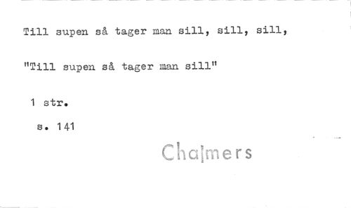 //// Till supen s& tager man sill, sill, sill, //// "Till supen så tager man sill" //// 1 str. s. 141 //// Chalmers