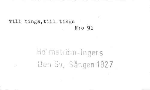 //// Till tings,till tings //// N:o 91 //// ho' mström-tngers Oei S-/. Sången 1927
