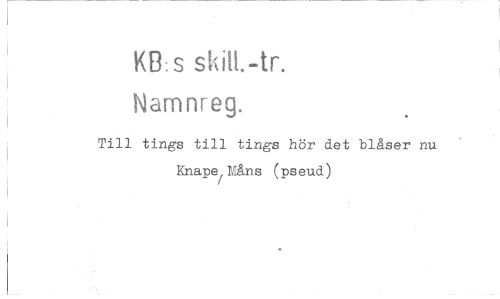 //// KB s sMt.-tr. Namnreg. //// Till tings till tings hör det blåser nu Knape,Måns (pseud)