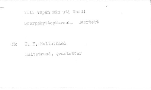 //// Till vapen mån uti Nor<H SkarpskyttepMarsch. art ett //// I. Y. Hultstrand Aultstrand, kvartetter