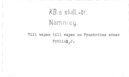 //// i //// I //// j KB:s ski^-tr, Namnreg. //// j Till vapen till vapen nu Frankrikes söner //// , Frölic§^,J. //// j