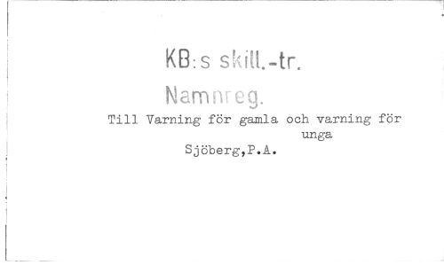 //// KB:s skiH.-tr. //// Namnreg. //// Till Varning för gamla och varning för //// unga //// Sjöberg,P.A.