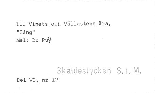 //// Til Vinets och Vällustens ära, "Sång" //// Mel: Du Puy //// Skaldestycken //// Del VI, nr 13