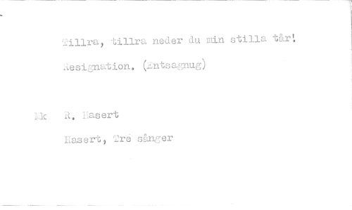 //// Tillra, tillra neder du C!in stilla tar resignation, (^.ntsa^ynug) //// R. Hasert //// Hasert, Tre sånger