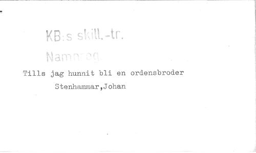 //// KB:S '' -t!\ //// Tills jag hunnit bli en ordensbroder Stenhammar,Johan