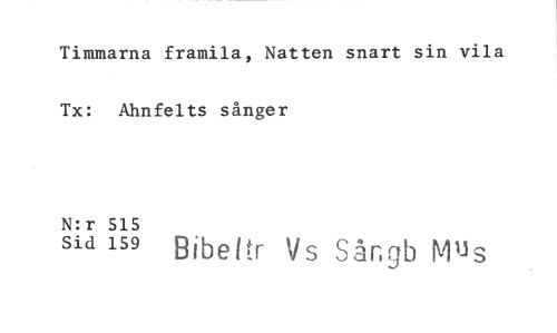 //// Timmarna framila, Natten snart sin vila Tx: Ahnfelts sånger //// N:r 515 //// sid 159 Bjbeftr Vs Sångb M^s