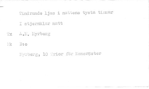 //// Tindrande ljus i nattens tysta tinnar I stjernklar natt Tx Å.U. Myrberg I.k D:o //// Myrberg, 10 Trior for Msnsröster