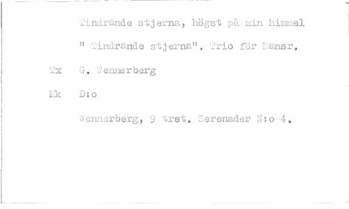 //// -'indrande stjerna, högst på min himmel " Tindrande stjerna". I'rio för Icansr, G. Wennerberg D:o //// Wennerberg, 9 trst. Serenader N:o 4*