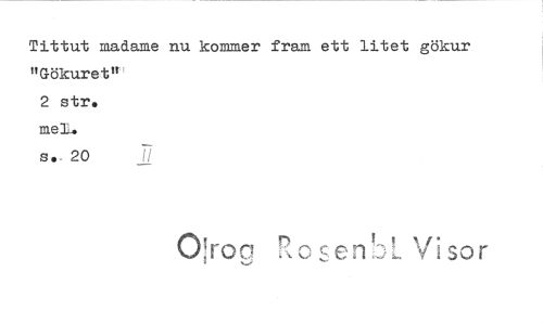 //// Tittut madame nu kommer fram ett litet gökur "Gökuret" //// 2 str. me IL. //// s. 20 ^ //// Ojrog Resen b L Visor