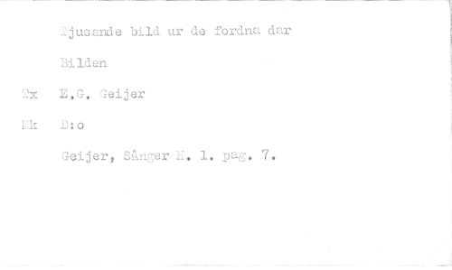 //// .. jusfmde bild ur de fordna dar //// Bilden //// E.G. 3eijer //// D:o //// Geijer, Såi^er H. 1. pag. 7.