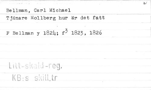 //// Bellman, Carl Michael //// Tjänare Mollberg hur är det fatt //// F Bellman y l82i).; 1823, 1826 //// L,U-s;v j-reg. t\E:s