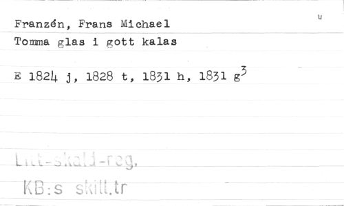 //// Franzén, Frans Michael Tomma glas i gott kalas //// E 182^ j, 1828 t, 1831 h, //// i- . . . ^ KB:s skitt.tr //// 1831