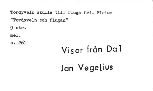 //// Tordyveln skulle till fluga fri. Pirium "Tordyveln och flugan" //// 9 str. mel. s. 261 //// Visor från Da 1 //// Jan Vegetius