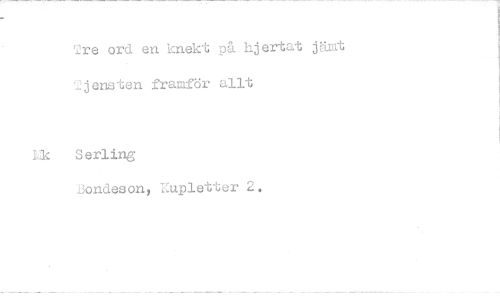 //// Tre ord en knekt på hjertat jämt Jjensten framför allt //// Serling //// Bondeson, Kupletter 2.