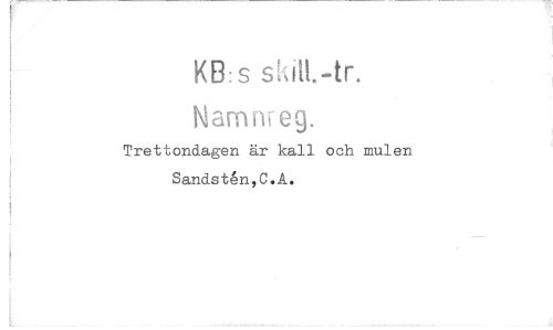 //// KB:s skiH.-tr. Namnreg. //// Trettondagen är kall och mulen Sandstén,C.A.