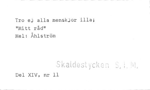 //// Tro ej alla menskjor illa; "Mitt råd" //// Mel: Åhlström