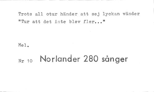 //// Trots all otur händer att sej lyckan vänder "Tur att det inte blev fler..." //// Mel. Nr 1 //// Nortander 280 sånger