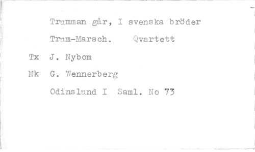 //// Trumman går, I svenska bröder Trum-Marsch. Qvartett Tx J. Nybom Mk G. Wennerberg //// Odinslund I Sami. No 73