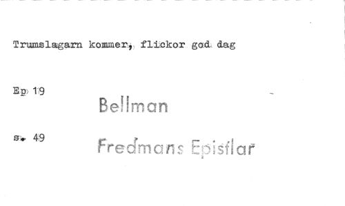 //// Trumslagarn kommer, flickor god dag //// E& 19 //// Beibucn //// si* 4 9 //// Frecfmans Episfiar